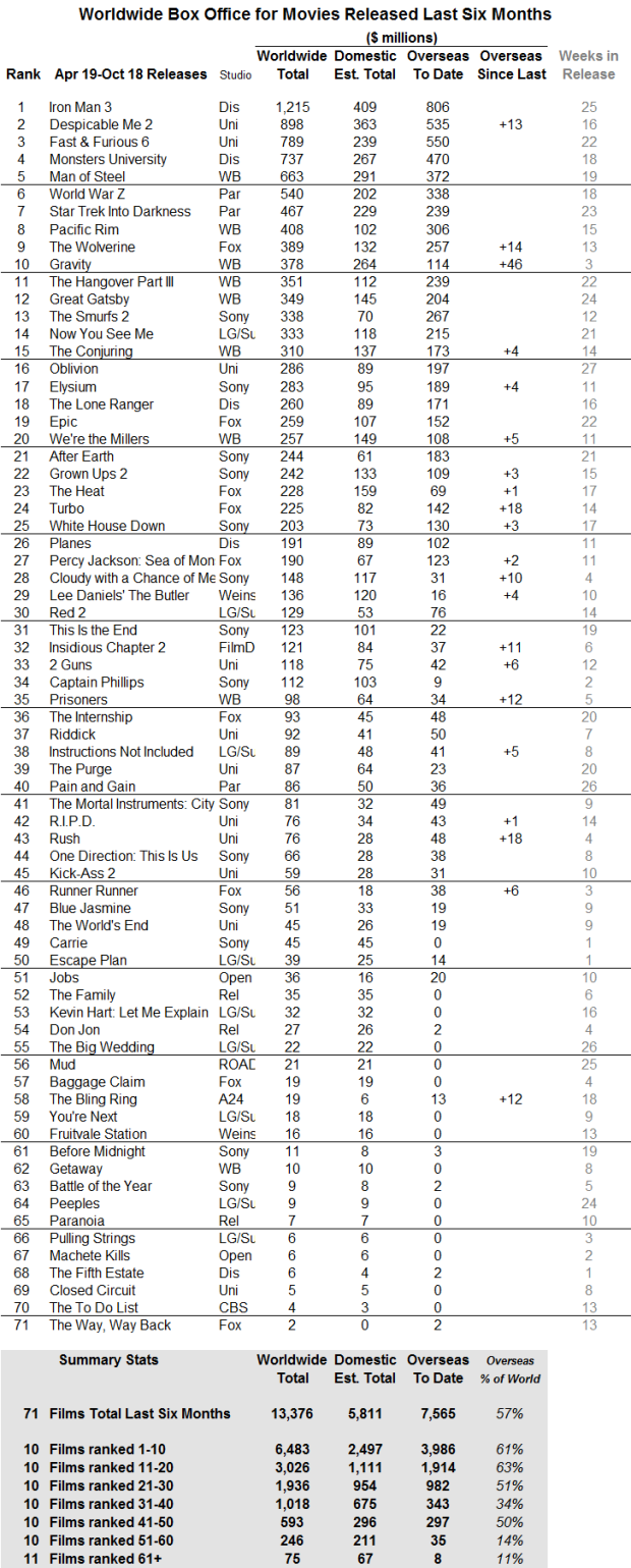 Big movers overseas this week include Django Unchained (now with $48 million overseas to date), Life of Pi (another $36 million overseas this past week to an astounding $393 million overseas and projected worldwide just under $500 million), and Les Miserables (up $35 million overseas this week to $151 million and a projected $301 million worldwide).…