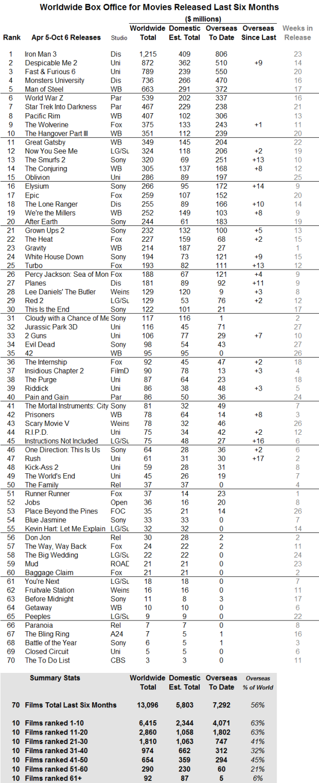 Updated tracking of overseas box office. Taken 2 is really starting to pick up steam overseas (up $65 million overseas since last week’s report), while Argo and Sinister open this weekend in the middle of the worldwide pack (with limited overseas prospects).