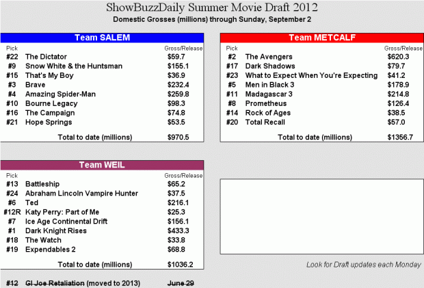 With Labor Day in the rear view mirror, it is time to proclaim the final standings in the second annual ShowbuzzDaily Summer Movie Draft: