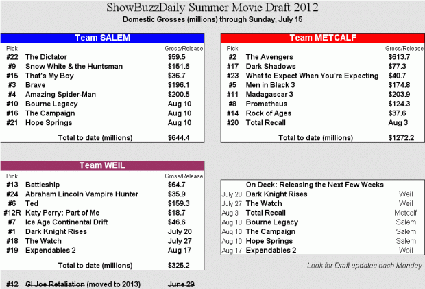 ShowBuzzDaily SUMMER MOVIE DRAFT: July 1 Update