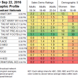 | 1 | NFLN THU NT FOOTBALL: 2016 WK 3 – HOU VS. NE | NFL NETWORK | 8:27 PM | 159 | 1.47 | 3,410 |