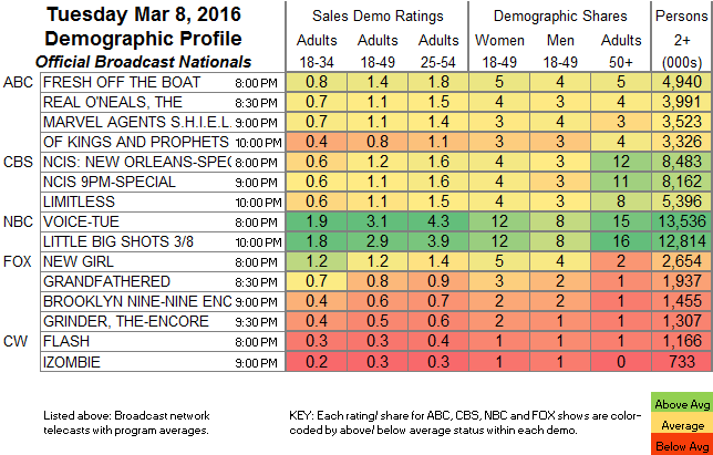 NETWORK FINALS: LIMITLESS was the only original to get a 0.1 bump in final numbers. In addition, the reruns of NCIS: NEW ORLEANS and THE FLASH were up 0.1.