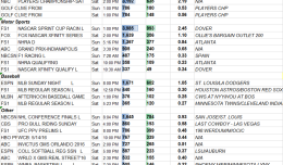 Here are the weekend sports ratings for Saturday and Sunday May 13-14, 2017.  Eligible programs include sporting events on broadcast and cable networks (minimum audience size 300K P2+).  Programs are grouped by sport and ra...